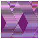 Tyg i en abstrakt, det moderna Mitt--Århundradet, snedvrider trycket av diamanten formar, med vågrät görad randig struktur, skuggar in av violetta lilor, lavendel, kräm och ljusa korallrosor