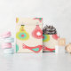 Detta mönster presenterar färgrika prydnadar och fåglar i en stil som inspireras av 50-tal och 60-tal.