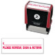 Den här självtryckande designen av gummi frimärke innehåller begäran "PLEASE REVIEW, SIGN & RETURN", tillsammans med en namnteckning linje. Den kan till exempel användas av en lärare för att begära att en förälder eller en vårdnadshavare granskar och bekräftar det märke som ett barn har fått för ett uppdrag.