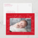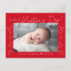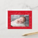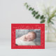 Dagkortet "Min första Alla hjärtans dag" i ett trendig vitt skript med handdragna hjärtan längs kortets sidor mot röd bakgrund. Vågräts foto visas nära mitten i designen. Anpassa Valentindagens vykort genom att lägga till ditt namn och året i vitt. vykortet återgår till visning av din returadress och ditt personliga meddelande.