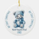 Mitt första julpojkens anpassade namn blått björn julgransprydnad keramik