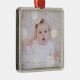 Ditt favoritfoto på ett fyrkantigt metall-ornament. Ladda upp din egen bild för att skapa Julgran-prydnadsföremål för dig själv eller ge som en gåva till familj, vänner, föräldrar och mor- och farföräldrar! Ord kärlek i ett skript för chic visas över fotot på framsidan eller radera det.