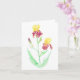 Mjukt gratulationskort med ompro av den ursprungliga vattenfärgen på gult iris. Tomt meddelande.