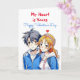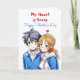 En glad Alla hjärtans dag-kort som skildrar ett animerat pojkpar och flickpar i blått och rött. På baksidan är en färgsida där du kan anpassa namn. Alla hjärtans dagskort till honom eller henne.
