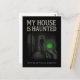 Skicka ett kusligt meddelande med vykortet Mitt hus är hemsökt – designat med kusliga skuggiga korridorer, spökaktig atmosfär och en glödande grön paranormal detektor. Kompletterat med sloganen ”Verifierat av synsk och medium”, är denna kusliga design perfekt för Halloween-post, paranormala evenemang eller bara för att skicka en skrämmande hälsning till vänner.