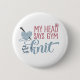 Knappbricka för roligt med stickande humor. Det stickande dilemnet lyder: "Mitt huvud säger gym, mitt hjärta säger sticka". Konstruktionen har en hjärtformade boll av garn med stickande nål och lite fjäril. Badge har en färg-palett med grått-blått, rosa och denim-blått. Bläddra i vår butik för att hitta matchande och koordinerande element.
