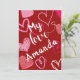 Fira kärlek med detta romantiska röda valentinskort som har det hjärtliga meddelandet ”Min älskade Amanda” på framsidan, omgivet av fantasifulla rosa, vita och röda hjärtan. Den livfulla designen tillför en touch av lekfullhet, vilket gör det perfekt för att uttrycka din tillgivenhet. Baksidan av kortet innehåller ett personligt meddelande och din signatur, så att du kan skapa en minnesvärd souvenir för din speciella någon.