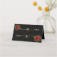 Detta vikta namn-platskort visas i en vanlig svart färg-bakgrund med ett vackert röd ros- och holly-tryck. Anpassa det här objektet eller precis som det är och lämna in skrivan namn.