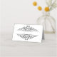 Det här vikta namn-platskortet visas i vitt basnamn med en elegant svart, blomande teckning. Anpassa det här objektet eller precis som det är och lämna in skrivan namn.