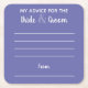 Roligt bröllop papper underlägg med fyra vita linjer för gästerna att skriva sina lycklig-tankar för nygifta över en periwinkle-lila. Bildtexten ovanpå underlägg lyder "Mitt råd till bruden och brudgummen" i vitt modernt typsnitt. Visa den matchande samlingen "White Gentle Flowers - Romantic Periwinkle Bröllop Suite" om du vill se alla samordningsposter, t.ex. pappra blöjor, pappert tallrikar, inbjudningssviter, OSA kort med mera. Om du vill ha ytterligare anpassning, ändringar i färg eller anpassningsbar kan du kontakta mig på acherryonthecake@hotmail.com (tillåt 1-2 arbetsdagar).