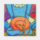 orange hund, blå stol.