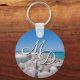 Anpassadet mellan nyckelkedjor och initialer tittar ut på det vackra Emerald Kusten i Mexikos Bukt i mitten på en sten-Jetty på ön Snäcka, i Panama City Beach i Florida. Tittar du för fler produkter? Besök min butik: http://www.zazzle.com/timelessmomentsphtgy Foto togs av Jennifer White med tidslös fotografi. Alla bilder är upphovsrättsskyddade.
