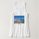 Kvinnors tanktop med ett utseende tittar vid det vackra Emerald Kusten i Mexikos Bukt i mitten vid en sten-Jetty på Snäcka Island, i Panama City Beach i Florida. Tittar du för fler produkter? Besök min butik: http://www.zazzle.com/timelessmomentsphtgy Foto togs av Jennifer White med tidslös fotografi. Alla bilder är upphovsrättsskyddade.