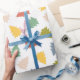 En lekfull jul mönster med abstrakt flerfärgat träd i mjuka nyanser som är spridda på vit bakgrund. Perfekt för festligt fel, presentbyte och säsong firande!