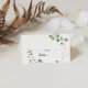 Detta geometriska platskort för den tropiska guld-grönten bröllop är perfekt för ett modernt bröllop. Utformningen har handmålade vackra löv för grönt, som lägger till ett guld-geometriskt ram. Anpassa baksidan av platskortet med namn på bruden och trippen och datum.
