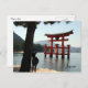 vykort från Itsukushima Shrine, Miyajima, Japan med hjort i förgrunden.