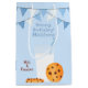Mjölk & Cookies För chokladkakan chip i älskare i familjen. Fira din lilla födelsedag med vår roligt, festkakor och mjölk tema. Med ett högt glas mjölk med ett halmstrån och choklad chip-kakor. Bakgrunden är ljusblå med fuktig buntning av flaggor. Helt anpassade. Ta en titt på de samordnande stationerna och presenterna.