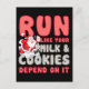 En annan fantastisk-presentidé från WeRunForFun! Det här är en rolig originalutformning som gjordes för ert helgdag-temade tävling i december. Om du vill visa din julanda utan att ha en fullt kostym, varför inte välja den här roliga kördesignen med Jultomten själv! Fullt-designcitatet lyder: "Springa som mjölk och kakor är beroende av det" - och tomten ser lite desperat ut när han svettas med. Plocka det här i tid för att din helgdag stressar-buster tävling, Jultomten Dash, Frosty 5K, Egg Nog Jog eller spelar ingen roll roligt helgdag tävling du har har att komma upp!