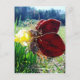 Mjölk med röd vingar och lila-klänning melling i gulten Daffodils Flowers Fairy and Photo by Artist Sandy Closs Fairy, älvors, pixie, pixies, fantasi, blommor, fjäril, fjärilar, rött, gult, lila, vår, saga, farbar och vind
