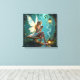 En vacker väggkonst biet med ett älv sitta på ett surhoom i en förändrad skog som lyfts upp av lyktor som dricker en varm kopp av kaffe.
