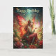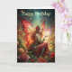 En söt älv i rött i en blomsterträdgård. Lämpligt för ett födelsedagskort för vem som helst. Du kan ändra texten