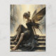 En älg med en svart klänning och guld och vingar sitter på en del trappor fantasi-AI-genererad konst