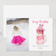 Illustration av en rosa masonburk milkshake toppad med strössel, pepparmyntsgodis, vispad kräm, godisstav, snöflinga och julgransformade julkulor. Texten säger "Mjölk Jul" Anpassa namnet, året och fotot.
