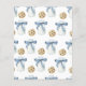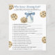 En liten kaka är på väg! Vattenfärgad babydusch party. Vattenfärgskakor med choklad och flaska mjölk med blå båge.