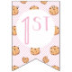 Mjölk och Cookies Birthday banderoll med rosa rand och choklad chip cookies.