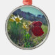Mjölk med röd vingar och lila-klänning melling i gulten Daffodils Flowers Fairy and Photo by Artist Sandy Closs Fairy, älvors, pixie, pixies, fantasi, blommor, fjäril, fjärilar, rött, gult, lila, vår, saga, farbar och vind