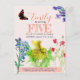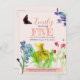 Födelsedagens inbjudan med lite mjöliga och färgstarka vilda blommor. Ett lycklig-kollage med handmålade vattenfärgade målningar för den lilla som firar sin femte födelsedag.
