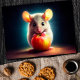 Fin liten grått-mus med stort rödäpple, mycket ljusa färger och fotorealistisk design. (SNÄLLA! - Se även andra nya samlingar för fler val)