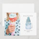 Illustration av en blå masonburk milkshake toppad med snöflingssprinklar, marshmallows och snöflinga julgodis. Texten står "Mjölk Jul". Anpassa namnet, året och fotot.