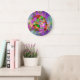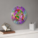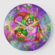 En söt blondinkulör vit kaukasisk fe med stor blå färgad ögon är sitta med ben som dras upp till bröstet och har en färgstark rosa och grönt klädd på. Hennes vackra rosa-fjäril vinge är öppen och hon är sitta på porten till sitt söta mejerihus, som är inramat av en glansig rosa, lila, blått och guld glitter som har mousserande stjärnor. Spola din dotter, barndotter, guddotter, systerbarn på deras födelsedag med den här fina väggtipset.