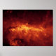 Vårt Milky Way är en dammig ställe. Så dammigt att vi inte kan se galaxens centrum i synligt ljus. Men när NASA:s Spitzer Space Telescope satte sitt infraröda ögon på det galaktiska centret, fångade det denna spektakulära syn. Med bara en av Spitzers kameror (vid en våglängd på 8 mikron) framhäver bilden regionens exceptionellt ljusa och dammiga moln som tänds av unga, massiva stjärnor. Enskilda stjärnor kan också ses som små punkter spridda genom dammet. Den översta mosaiken visar en del av galaktens centrum som sträcker sig över en avstånd ljusperiod på 760 år. Tack vare Spitzers utmärkta upplösning ses dammiga funktioner i galaktcentret i en aldrig tidigare skådad detaljrikedom. Fyra exempel visas i de förstorade inslagen vid grund. I den längst lämnat lådan visas ett par stjärnbildande regioner som liknar uggla-liknande kosmisk ögon. Till lämnat om "ögon" kan man se mörkens fack med damm. Detta objekt ligger förmodligen i ett spiral-arm mellan Jorden och det galaktiska centret, till skillnad från följande exempel, som alla finns på galaktcentret. Nästa ingång till högerna omfattar de extremt luminösa "Quintuplet"-stjärnorna, en uppsättning fem stora stjärnor som tros ha begravt sig själva i dammkokonger. Precis under och till Quintuplets höger är "Pistol" nebulan, en bubbla av utkastat material från den centrala, massiva Pistol-stjärnan. De finger-liknande pelarna till lämnad är en del av en struktur som kallas "Sickle". De liknar storlekt och formmässigt dem i berömden bild i Eagle Nebula som tagits av NASA:s mobiltelefonkioskopa. Pillarer som dessa är utsorterade ur täta dammmoln genom strålning och vind från hettens stjärnor. Pelarna i Sickle skulle sannolikt ha bildats av ett kluster av hetter som är placerade vid högerna men som inte är väl synliga här. Den tredje insatsen belyser ett system med långa, hårda strukturer som för första gången ses nära basen i en region som kallas "Arched Filaments". Dessa långa glödtrådar är cirka 10 ljusår och mindre än 1 ljusår breda. De ljusa stjärnbildande områdena i högerna är några av de ljusaste i infraröda himlar. Det sista indraget i högerna visar centrum för vår galaxi, som är den ljusaste punkten i hela mosaiken. Ljusstyrkan är ett resultat av att dammet upphettas av ett kompakt kluster av hetter. Den ljusa punkten markerar också placeringen av ett överväldigande svart hål, runt vilket ett roterande ring av gas och stoft, som går under namnet omkärnspalten, kan ses. Bilden togs med Spitzers infraröda matriskamera (IRAC) med hjälp av dess 8-mikrondetektor. Den visar utsläpp från upphettade molekyler i dammmoln som kallas polycykliska aromatiska kolväten.