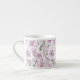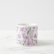 En liten espressokopp prydd med ömtåliga rosa och lila akvarellblommor, som ger en elegant, feminin touch till kafferitualer, hemmakaféer och presentfärdiga dricksuppsättningar. Den mjuka pastellpaletten och luftiga botaniska stilen tilltalar kvinnor som njuter av raffinerade, romantiska accenter i sina vardagliga ögonblick.