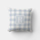 Specialdesignad modern rustik kastkudde med personlig monogram på ljust dammigt blått buffalo-rutmönster.