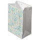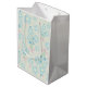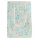 En harmonisk blandning av mjukt blåa blommor med centrum för gult av blek, som är bundna med söta bågar av rosa och som är placerade i olika storlekar. De ömtåliga bouqueterna är vackert sammanflätade över en mjuk, grönaktig bakgrund av pastellerna, som utstrålar en känsla av lugn och söt enkelhet.