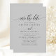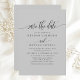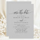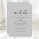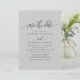 Detta minimalistiska kort för att spara datumet har vackra mjuka grå nyanser i kombination med elegant kalligrafiskrift. Med en modern och enkel design är detta mångsidiga kort perfekt för alla säsonger - vår, sommar, vinter eller höst. Det utstrålar en klassisk och stilren känsla, perfekt för ett romantiskt, chic eller sofistikerat bröllopstema.