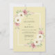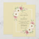 Denna design har en mjuk gul bakgrund i smörmjölksfärg prydd med ömtåliga vattenfärgblommor i nyanser av rosafärgat och elfenbensvitt. Etiska anemoneblommor och luftig lövverk skapar en lugn, romantisk estetik perfekt för en säsongsbetonad vår- eller sommarhändelse. De måleriska botaniska detaljerna frammanar en graciös, naturinspirerad stämning.