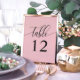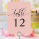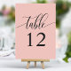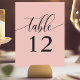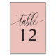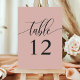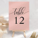 Mjuk korallrosa minimalistisk kalligrafi bröllop bordsnummer