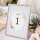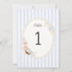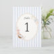 Fira bruden med vårt Soft Coastal Bridal Shower-bordnummerkort, där havets lugna skönhet möter vintageelegans. Detta exklusivt designade bordnummer fångar essensen av en strandfest, perfekt för att hedra det kommande bröllopet med stil. Kortet har en lugnande bakgrund av mjuka blå ränder, som påminner om mjuka havsvågor som sköljer mot stranden. Detta lugnande mönster sätter en avkopplande ton och inbjuder gästerna till en lugn kustfirande.