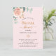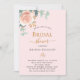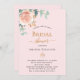 En rosa bakgrund. Dekorerad med en blommigt för guld och rosa, blomma från ro och grönt, vattenfärgad eukalyptus löv, sprig, grönsak och faux ro sprig. Anpassa och lägg till bridens namn för att vara och närmare party.