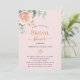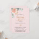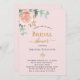 En rosa bakgrund. Dekorerad med en blommigt för guld och rosa, blomma från ro och grönt, vattenfärgad eukalyptus löv, sprig, grönsak och faux ro sprig. Anpassa och lägg till bridens namn för att vara och närmare party.
