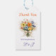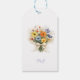 Elegant bröllopspresentetikett med en delikat vildblombukett med dammiga blåa accenter och varma neutrala toner. Den raffinerade designen tillför en romantisk och sammanhållen touch till bröllopspresenter, presentförpackningar eller evenemangets detaljer.