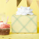 Skjutfull pastellförpackning med papper gult med en subtil diagonal geometrisk mönster av förreglande mint-grönt och ljusblå linjer. Perfekt för vår, Påsk, babyduschar och vanliga ljuva presenter.