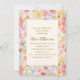 Denna romantiska baby shower-inbjudan har en drömlik akvarellblomma kant i mjuka nyanser av rosafärgad, lila, smörgul och persika. Den måleriska designen har en tidlös elegans som är perfekt för trädgårdsfester, vårfirande eller eftermiddagste. Ett vackert, feminint val för att hedra den blivande mamman med stil.