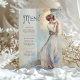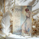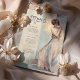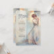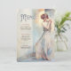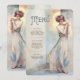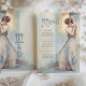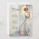 Förhöj din bröllopsdekor med denna fantastiska Art Nouveau-inspirerade menykort, med en graciös kvinna i en flödande pastellfärgad klänning som framhävs av glänsande guldfärgade accenter. Den eteriska bakgrunden i mjuka blå, vita och gyllene nyanser skapar en drömlik och romantisk atmosfär. Perfekt för vintage-, klassiska eller himmelska bröllop, utstrålar denna meny elegans och sofistikation. Den raffinerade typografin kompletterar den konstnärliga designen och gör den till ett oförglömligt tillägg till din bröllopsfirande. Helt anpassningsbar för att visa dina unika meny detaljer.