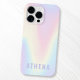 Trendig iphone case pastel med en mjuk bakgrund av regnbågen mönster och ditt namn med lätt lila.