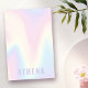 Trendigets klibbiga anteckningar med en mjuk bakgrund av inklistrad regnbåge i mönster och ditt namn i lätt lila.